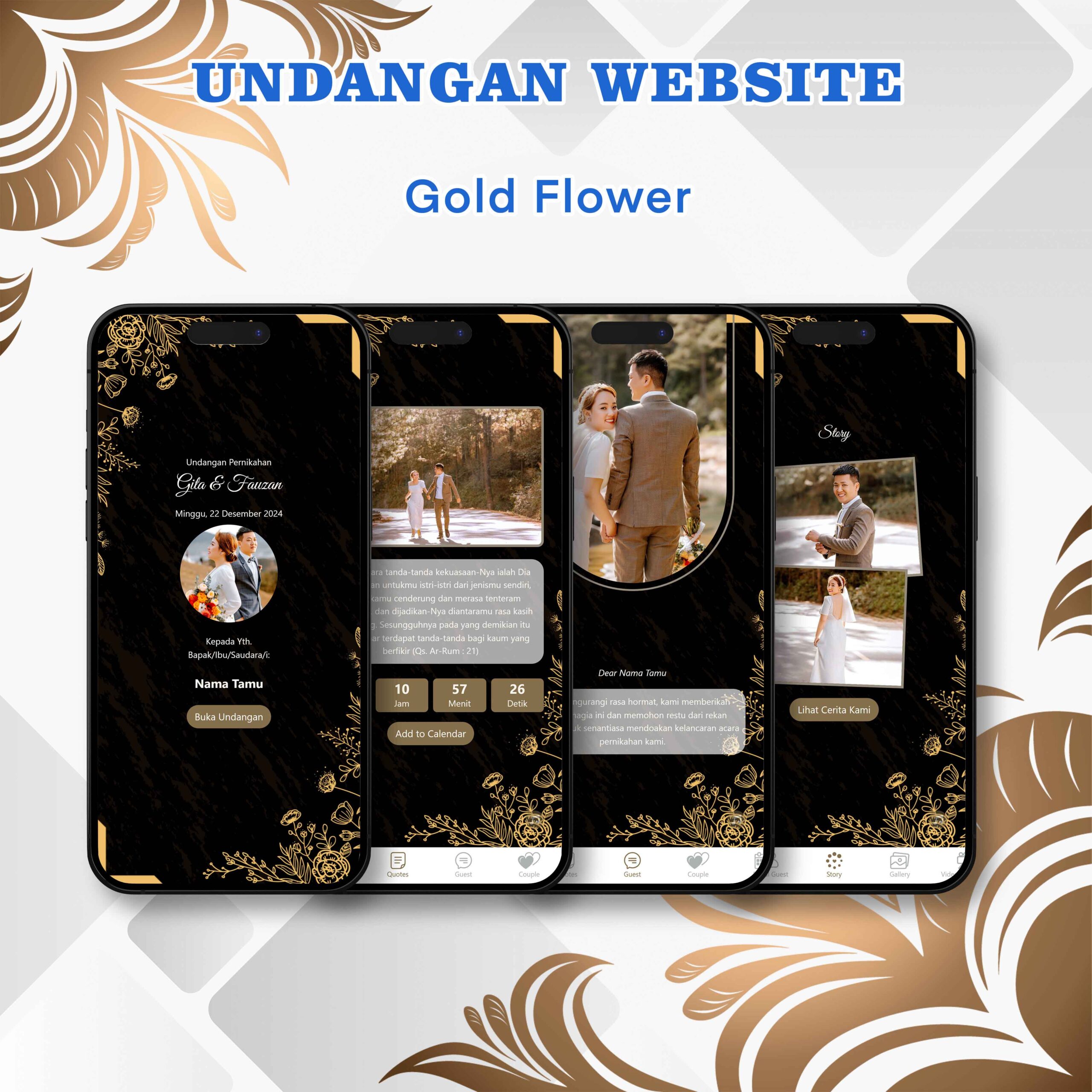 Link Live Demo : https://invitnikah.com/theme/preview/gold-flower